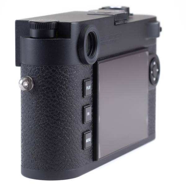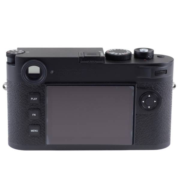 This Black M11 Body was bought at the Boutique and used with great care for less than two years. Clean sensor, bright and accurate viewfinder and rangefinder. Only light brassing appears on the edge of the ISO dial. Scratch-free LCD screen with screen protector. The black paint body and the covering are in perfect condition. This Modern Digital M is as good as New! And comes with one year of warranty.