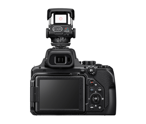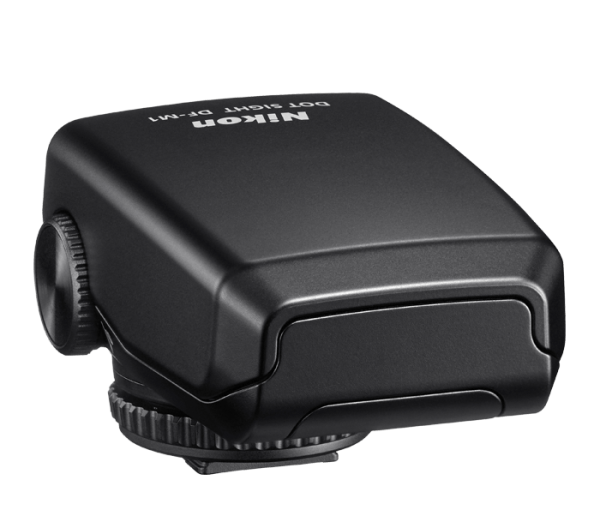 The DF-M1 Dot Sight is designed to be used with select Nikon cameras. When attached to the camera's hot-shoe, it assists you in acquiring distant subjects by acting as a zoomed-out targeting device. Just line up the subject in the Dot Sight at a normal field of view to easily track it at extreme magnifications.