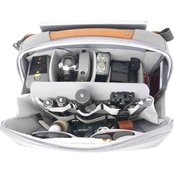The modern, sleek, and stylish, this all-in-one bag is designed to organize and carry camera equipment or a vlogging kit, including cables, accessories, and even a compact travel tripod.