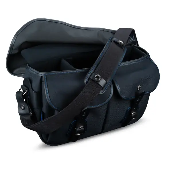 Tous les sacs de cette collection sont livrés avec une épaulette assortie, ornée des mêmes surpiqûres bleues que les sacs. La collection Midnight se distingue par notre matériau FibreNyte noir imperméable, agrémenté de coutures bleues élégantes et de discrètes touches de cuir bleu. Le matériau FibreNyte noir est doublé d’un tissu intérieur noir, avec des séparateurs et des inserts assortis.